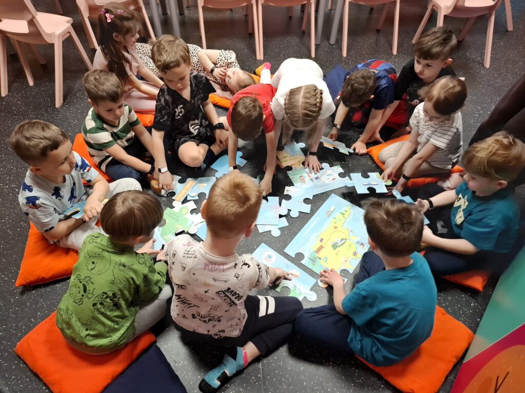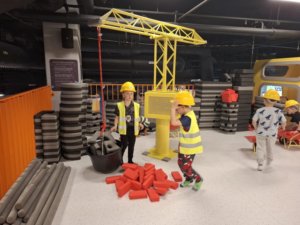 Podczas pobytu w centrum dzieci miały okazję korzystać z wielu interaktywnych stref zabawy, które rozwijały ich kreatywność, wyobraźnię oraz umiejętności współpracy 🎨🤝. Największym zainteresowaniem cieszyły się warsztaty samolotowe ✈️, podczas których przedszkolaki mogły dowiedzieć się, jak powstają samoloty, a także samodzielnie stworzyć swoje własne modele. Było przy tym dużo radości, śmiechu i satysfakcji z wykonanej pracy 😄.